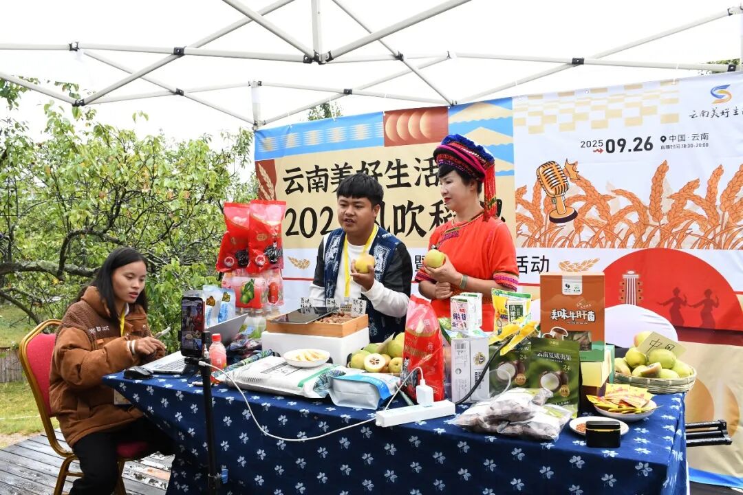 9月26日,以“庆农业丰收 享美好生活”为主题的“云南美好生活•2025风吹稻浪”网络主题音乐暨直播带货活动在大理州洱源县凤羽镇稻田剧场举行。