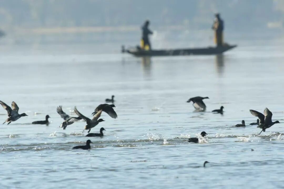 初冬时节,剑湖国家重要湿地迎来候鸟迁徙高峰。澄澈湖面波光粼粼,芦苇摇曳间,彩鹮、灰鹤和乌雕等珍稀鸟类或翩跹起舞、或浅滩觅食,与蓝天白云、湿地草甸构成绝美生态画卷。