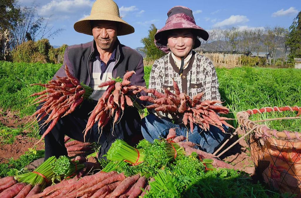 时下,云南省大理白族自治州巍山彝族回族自治县大仓镇小河村委会中项厂村种植的黄萝卜喜获丰收。
