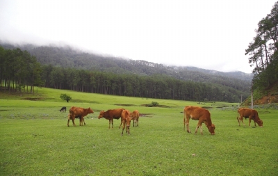 盛夏走进云龙大浪坝,仿佛走进了一个天然氧吧,润心润肺。这里风光秀美,山上云雾缭绕,山下绿草茵茵,水牛、黄牛、毛驴自由自在地吃着草,脖子上的铃铛,叮叮当当响个不停,宛如天籁之音。星星点点的报春花绽放,静听花开的声音,竟是如此美丽。踩着柔软的草地,继续往下走,看见一条小溪由北向南弯弯曲曲穿过草地,美轮美奂,像一个童话世界,让人迷醉于高山草甸。(杨利军)