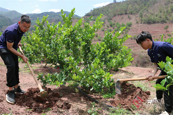 正在基地里和工人开挖施肥沟、测量冠幅、茎粗,测量相对叶绿素值的小院科技人员杨家伟、杨学东告诉记者,科技小院通过开展巍山柠檬科技联合攻关与技术研发,形成柠檬绿色优质高效生产应用技术,并开展村、镇、县域的柠檬技术培训、技术指导、技术咨询与现场技术服务,培养当地农技人才、助力农技推广。