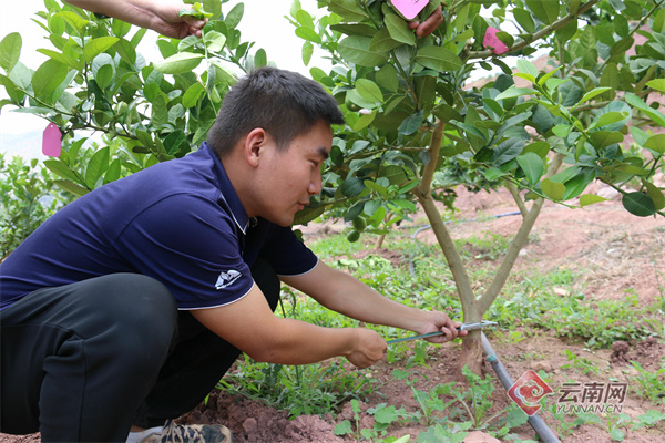 初夏,赤日炎炎。在距黑潓江边约300米的大理白族自治州巍山彝族回族自治县马鞍山乡红旗村柠檬种植基地,种植户赵朝政正在认真跟科技小院的技术人员学习柠檬管理技术。“过去我们只知道有蓟马这种害虫,但是有哪些危害不清楚。科技人员指导后,我们就看得出蓟马主要是危害花,红蜘蛛主要危害叶片。再比如我们以前种植一般用化学肥料,跟科技专家学习后,知道种柠檬要以有机肥为主,包括在修剪和树枝整形等方面对我们帮助很大。”赵朝政说。