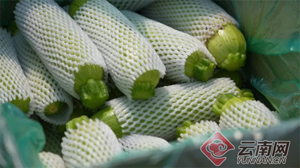 在县城另一边的新街镇罗荡村,村民王志乾刚刚建成的蔬菜大棚里,西葫芦已然可以采摘上市。王志乾家的蔬菜大棚共有10亩,全部采用标准化建设,大棚配套水肥一体化等现代化技术,依托村里的弥渡泽泰种养殖农民专业合作社,采取“农户绑合作社、合作社绑企业”的模式,企业负责生产技术指导和销售,合作社统一采购种苗、化肥等物资并监督销售,王志乾只需要专注种植和田间管理。“一年收三季,每亩基本收入两万。”王志乾说。罗荡村通过整合土地资源建设标准化大棚,并依托“双绑”模式发展蔬菜产业,目前,全村已建成蔬菜大棚190亩,绑定农户20户。