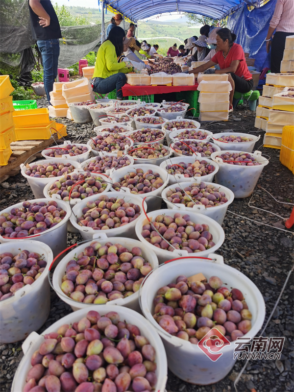 记者来到位于大理白族自治州宾川县大营镇的冬梅水果园,160亩西梅已经挂上了果。“宾川西梅7月中旬成熟,比新疆早成熟20来天,可抢抓市场空档期上市。”宾川县宾杰农副产品有限责任公司经理郑杰介绍,“我们种出来的西梅,皮薄肉厚、口感脆嫩、果肉细腻、汁水充盈,糖度达到24以上,还有浓郁的蜜香,去年刚一上市,就赢得了各地客商的高度好评,被很多客商认定为‘全中国最好吃的西梅’,我们自己的品牌‘冬梅嬢’西梅也在全国打出了名气。”