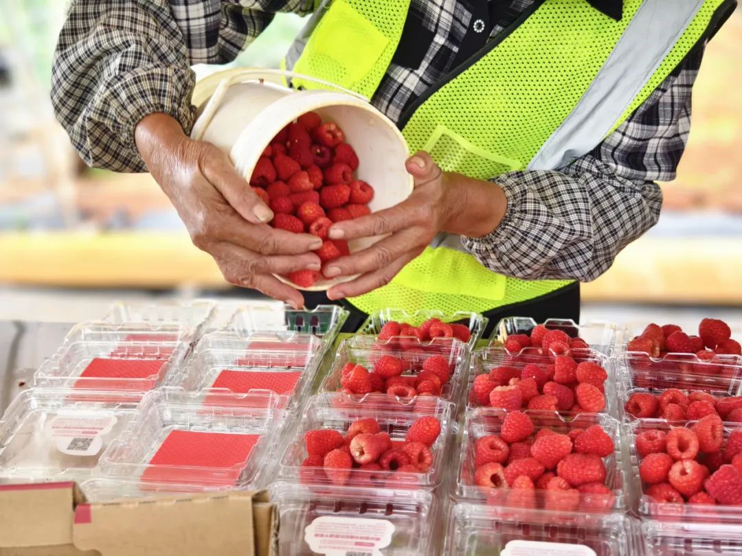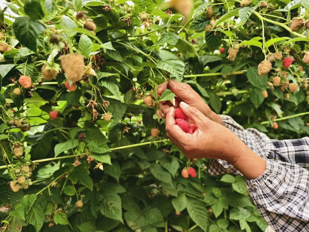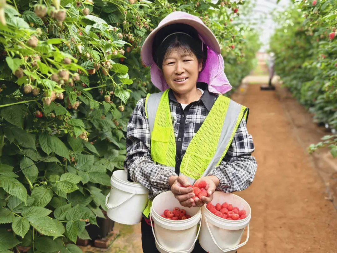 金墩乡小白龙现代农业产业园浆果种植基地种植的H6品种树莓,糖度达9.7度,糖酸比达13.3%,口感酸甜适中,风味独特。据基地负责人李四红介绍,树莓种植采用无土栽培技术,配合水肥一体化灌溉,精准调控养分供给。更值得一提的是,利用生物防治手段,减少农药使用,确保树莓更加安全、有机,并错峰上市,填补了夏季树莓市场的空白,赢得了价格优势。