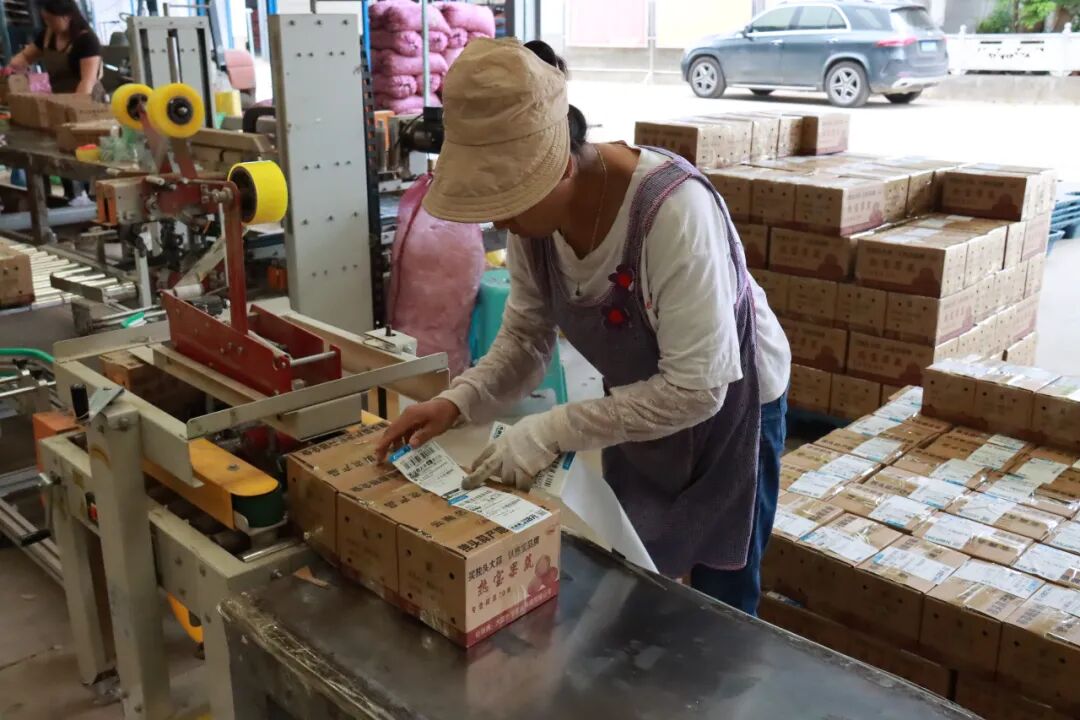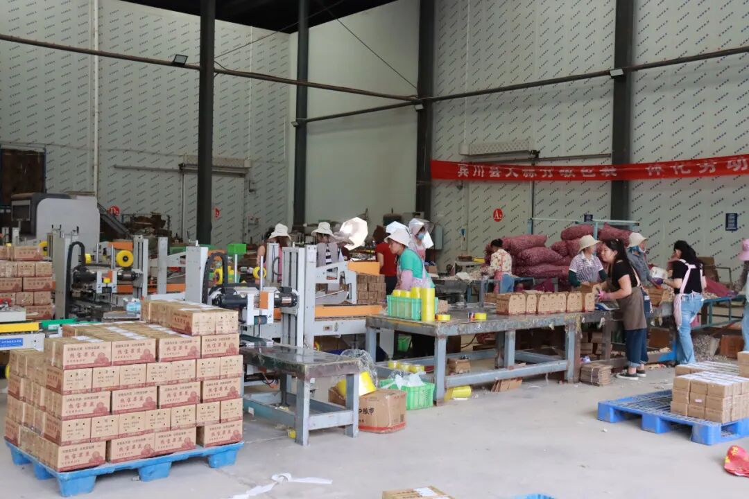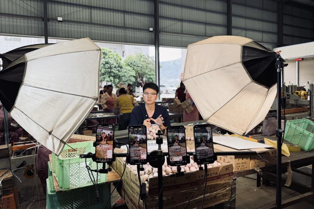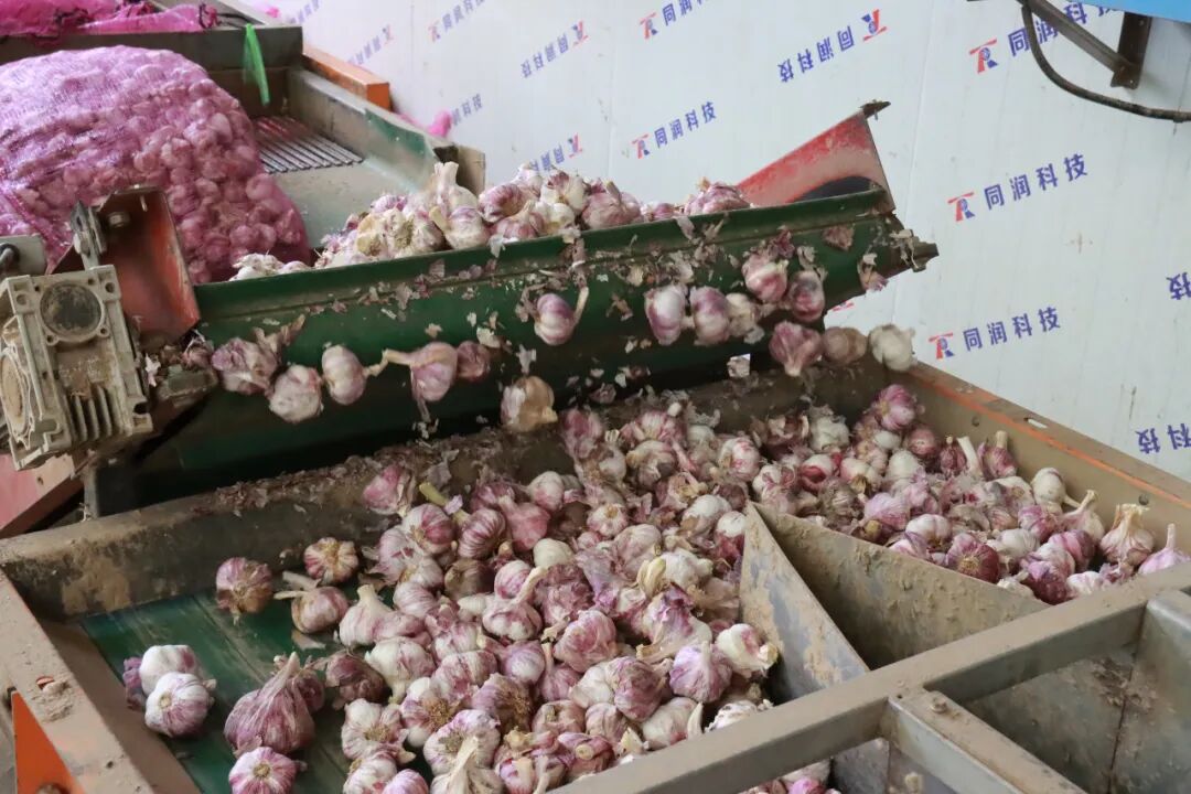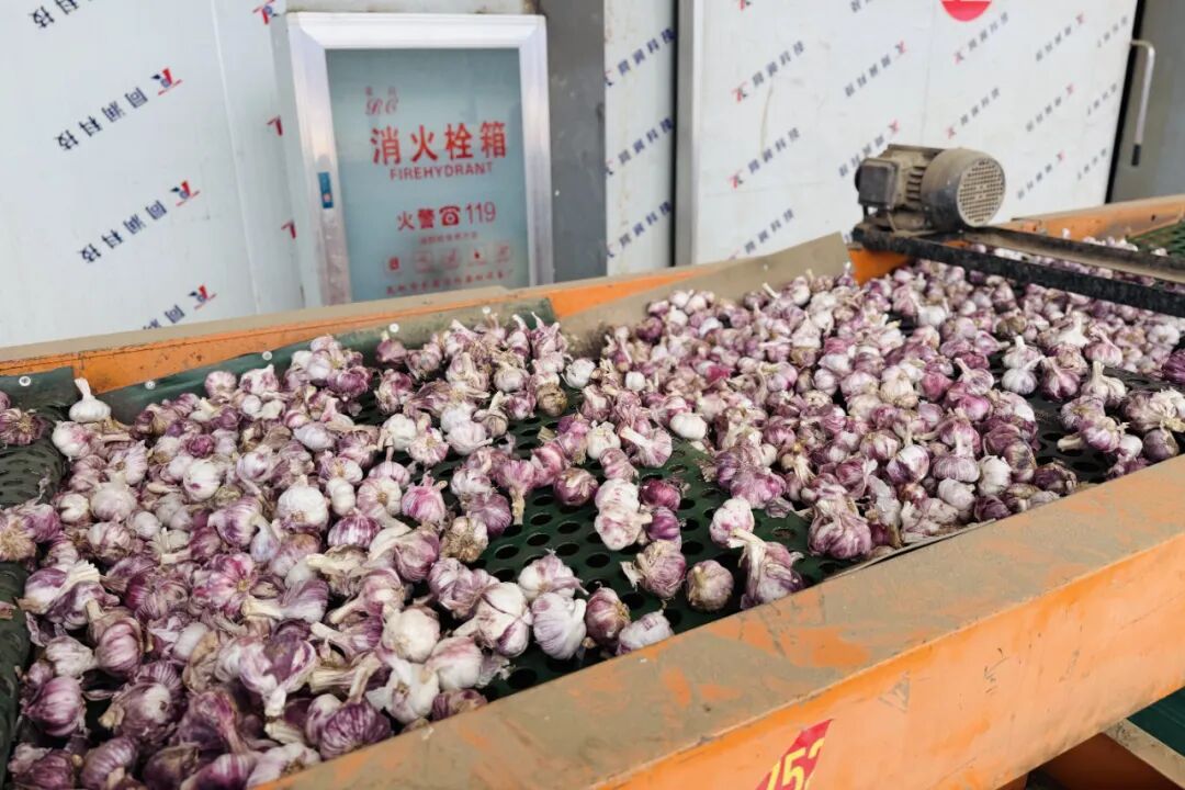依托“合作社+农户+企业”的产业化经营模式,宾居镇逐步构建起集种植、采收、分拣、加工、销售于一体的完整产业链。在鲜行农业、热宝公司等龙头企业的带动下,建成标准化加工生产线,一条全自动流水线,单日可承载50吨的大蒜分拣任务,不仅提高效率,还降低了中间的人工成本。此外,企业还组建专业的电商团队,通过拼多多、抖音、视频号等多个平台,将“宾居大蒜”销往全国各地。就拿热宝公司来说,今年上半年销售200多万单,销售额达到5000多万。尽管每年八九月份属于大蒜销售淡季,但今年销量依然很火爆,每天销量达到8000多单。