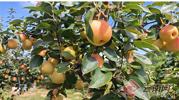 初秋的祥云县刘厂镇大波那村,漫山的果园里挂满了会“脸红”的祥云红梨。金黄果皮裹着胭脂红,空气中四处弥漫着浓浓的梨香,让人忍不住想凑上前尝鲜。