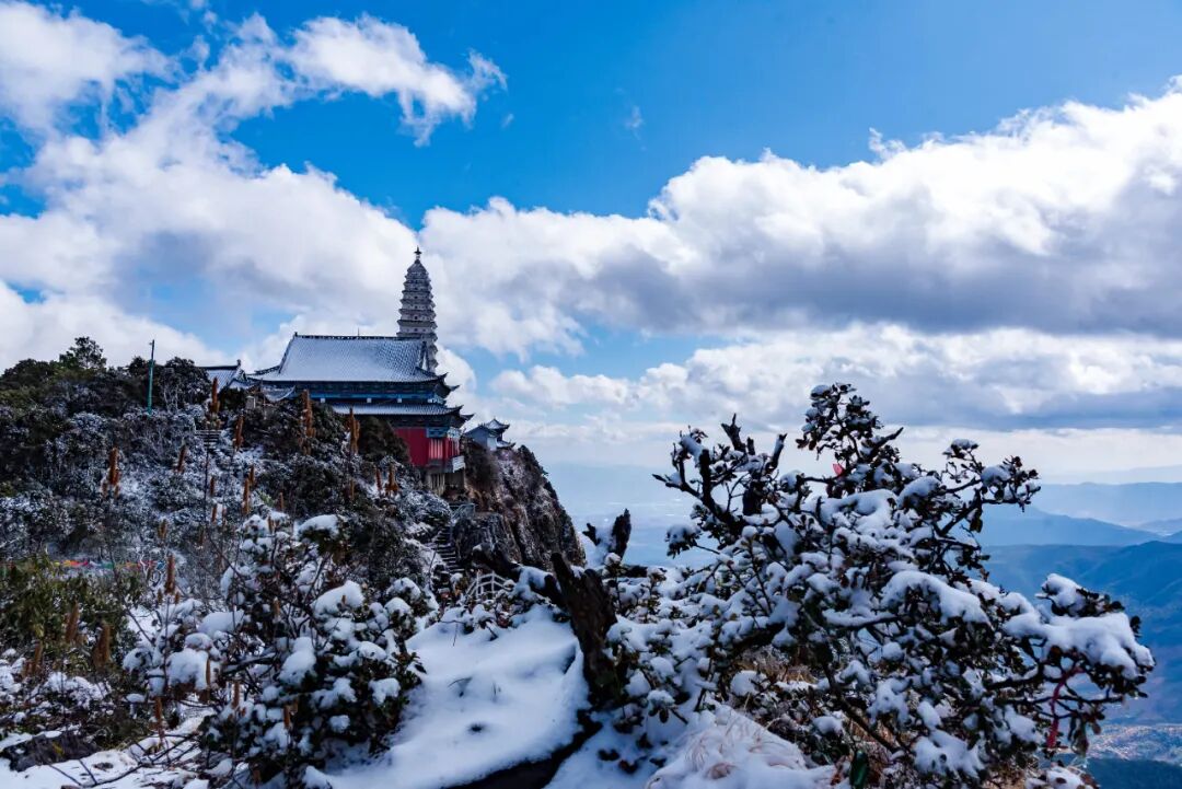 站在金顶之上,东观日出云海,磅礴壮丽;西望苍洱风光,如诗如画;南眺祥云瑞霭,如梦似幻;北睹玉龙雪山,绵延巍峨,令人心旷神怡,仿佛世间的烦恼都被抛诸脑后。