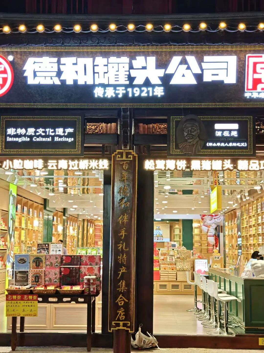 在大理古城街道,远远望去便可看到一只萌态可掬的大瓦猫慵懒地卧于青瓦屋顶上,与蓝天白云相映成趣,这里便是昆明德和罐头食品有限责任公司在大理开设的首家旗舰店。门前店内,聚集着充满活力、追逐潮流的年轻游客们,空气中飘散着现磨咖啡的醇香,琳琅满目的商品完美地融合了云南特色和潮流文化。