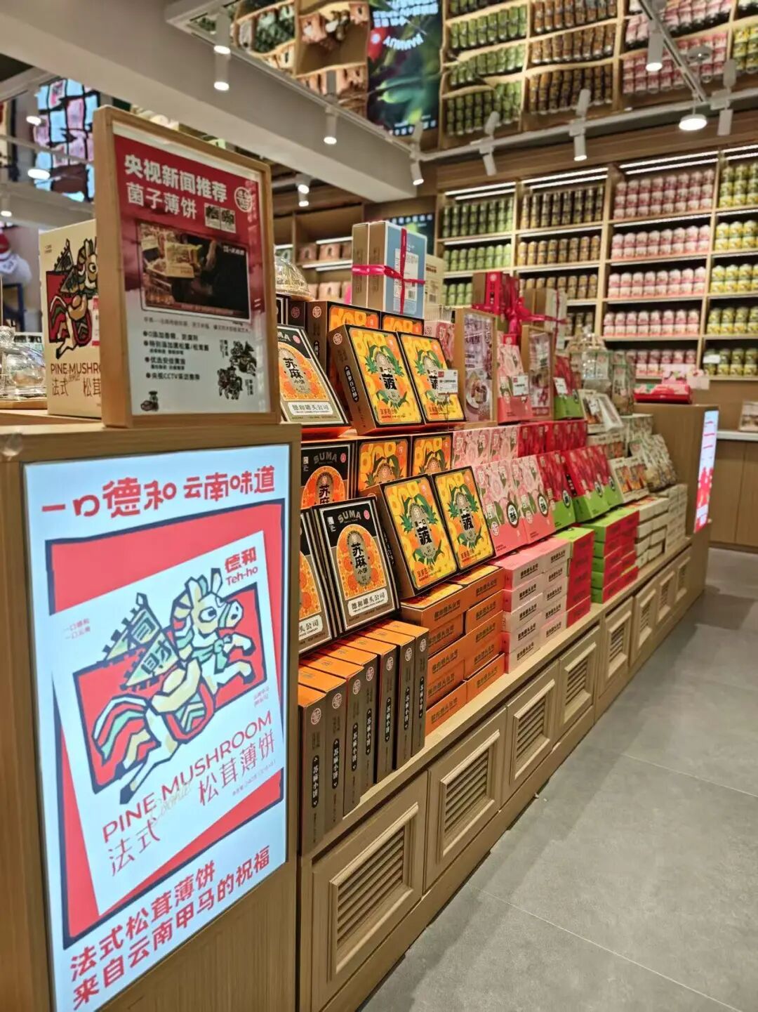 德和还将大理甲马非遗文化运用于菌子薄饼、午餐肉等产品包装,以时尚语言重构传统符号;乳扇沙琪玛则以“南诏武侠风”重新叙事,让食品消费升级为文化体验。“大理店是德和首家样板门店,未来我们将在云南多地复制这一“文旅商”融合模式,探索文旅消费从产品到文化体验的新路径,让本土饮食文化可触、可感。”江文文说。