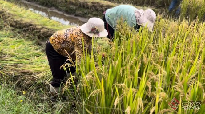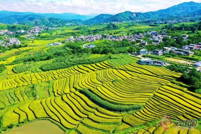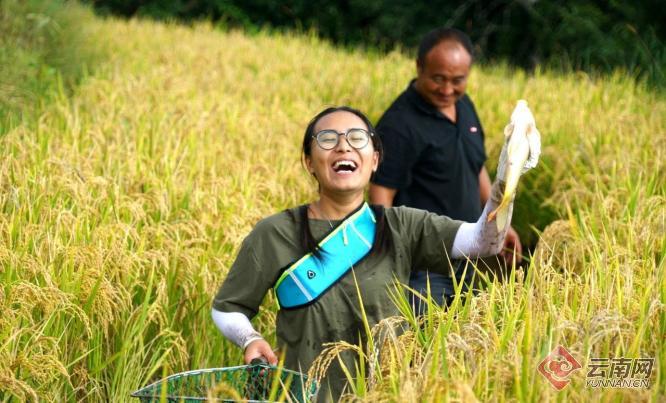 来到大理白族自治州永平县龙门乡龙门村委会官庄村,层层梯田被金黄的稻浪包裹,只见连片稻田里,稻谷颗粒饱满,清澈的山泉水顺着田埂潺潺流淌,肥硕的稻花鱼不时跃出水面,空气中满是稻谷的清香。