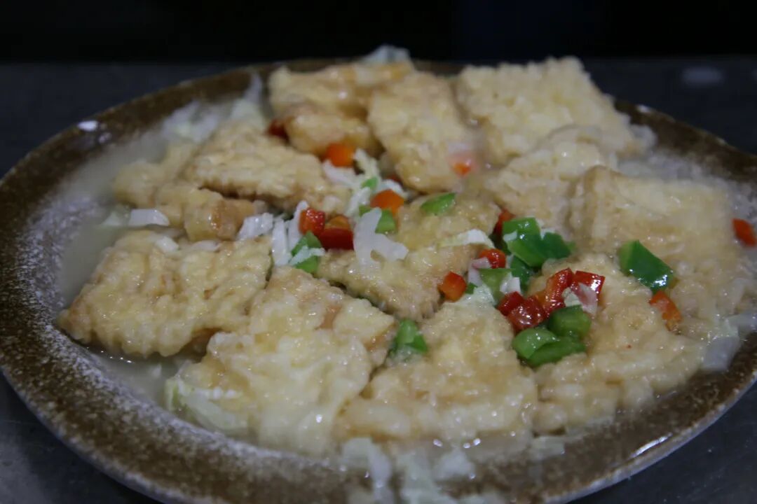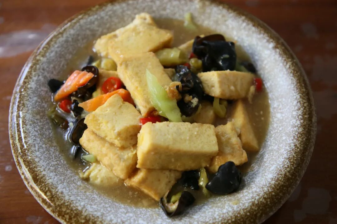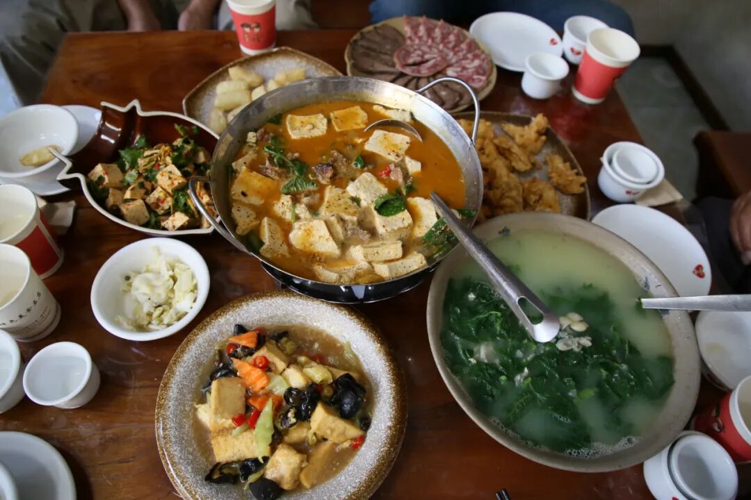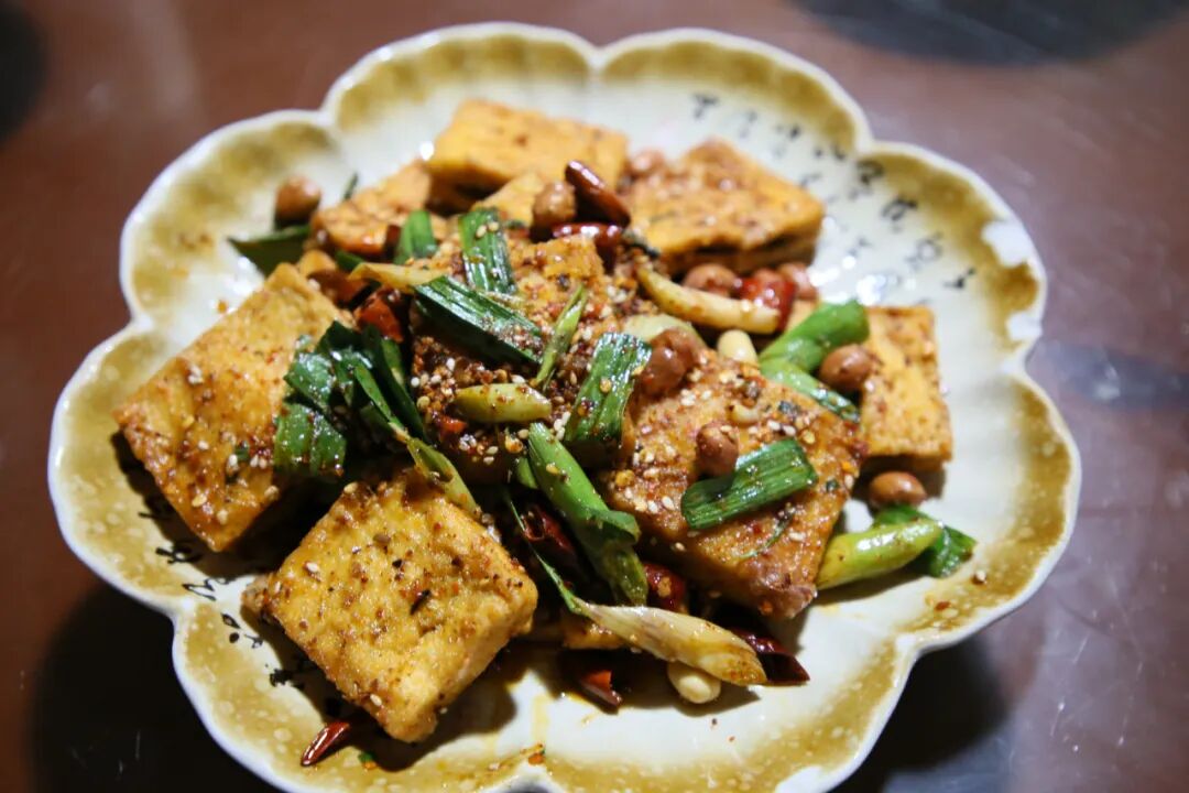 在弥渡县弥城镇古道饭庄内,不少食客或举家出行,或邀约好友,专程前来品尝地道的密祉豆腐宴。餐桌上,凉拌豆腐丝、油炸豆腐泡、砂锅豆腐煲等十余道豆腐菜品依次摆放,清爽开胃的口感、外酥里嫩的质地、鲜香浓郁的汤汁,引得食客频频称赞。