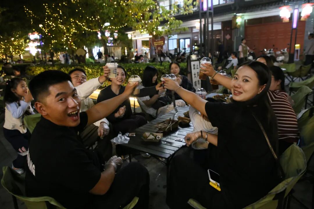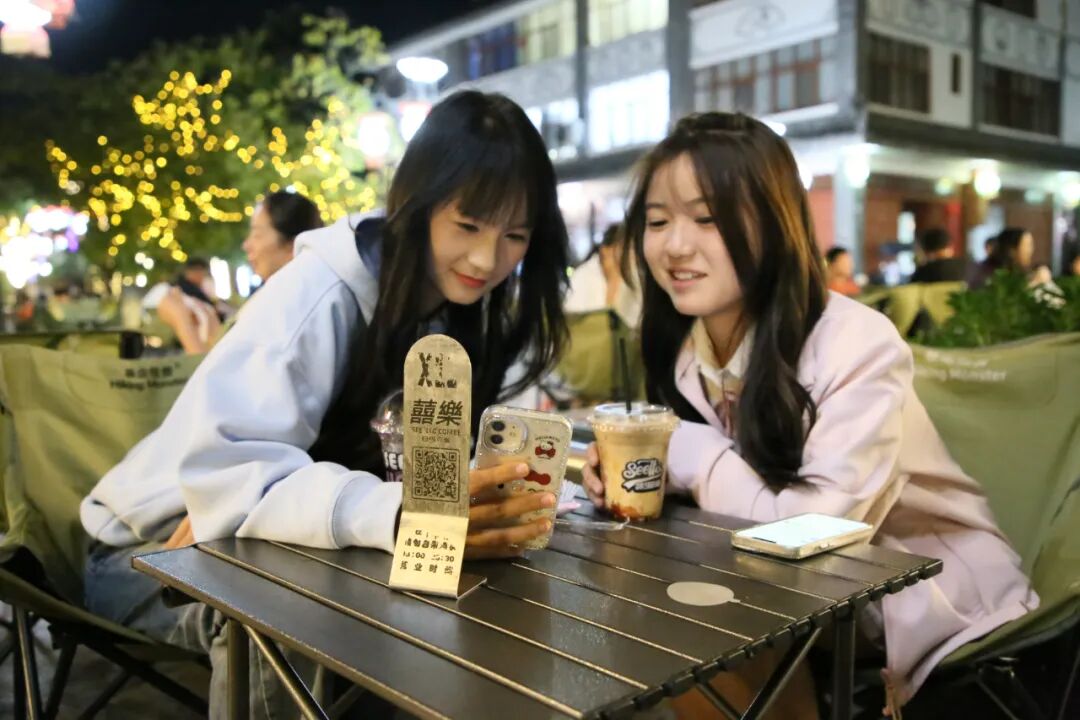 除密祉豆腐宴持续火爆外,新潮咖啡消费也为弥渡假日经济增添“小资”色彩。在顺城街路段的囍乐咖啡吧内,年轻人围坐交谈、拍照打卡,咖啡杯碰撞声此起彼伏。为契合节日氛围,咖啡吧推出限定饮品,“特调初见”以本地墨红食用玫瑰水、大理青梅搭配美式咖啡,成为年轻群体打卡“标配”。