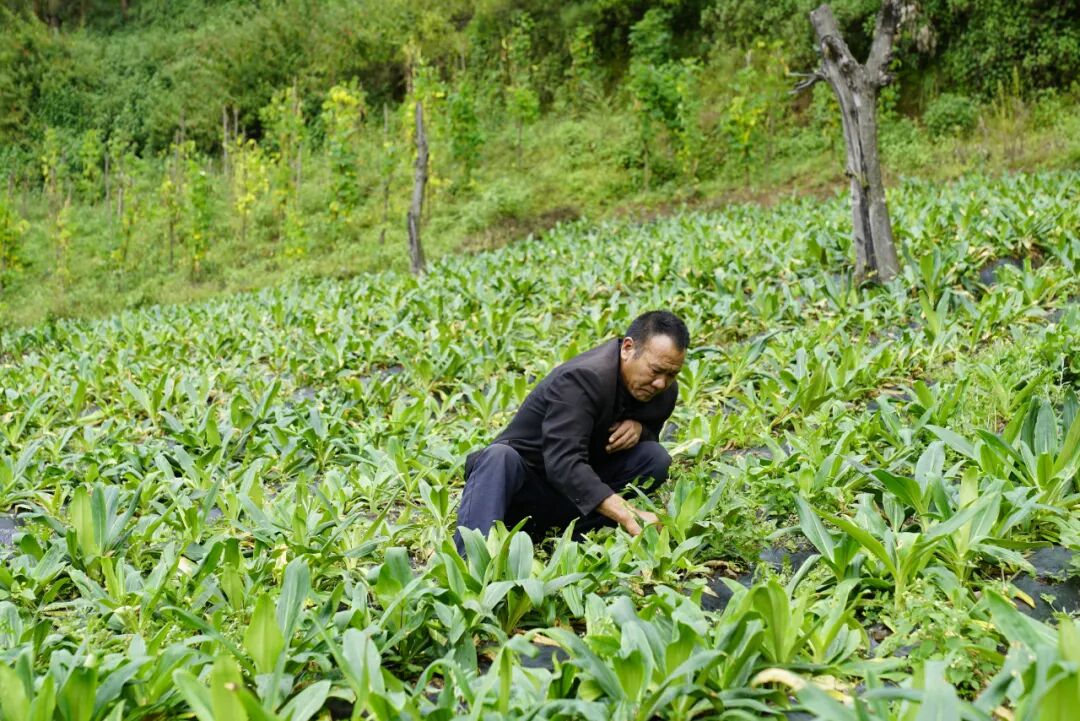 在中草药秦艽地里,54岁的毕荣富正一边清理杂草,一边拨开秦艽的叶片仔细查看。去年他种了3亩秦艽,今年扩大到了13亩,从育苗到管护都格外用心,每天都要到地里观察秦艽的生长情况。