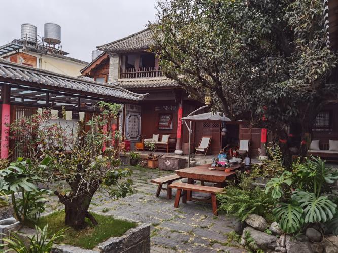走在银苍社区,许多民宿院落保留了青瓦白墙、三坊一照壁、四合五天井、白族民居彩绘的建筑特色。