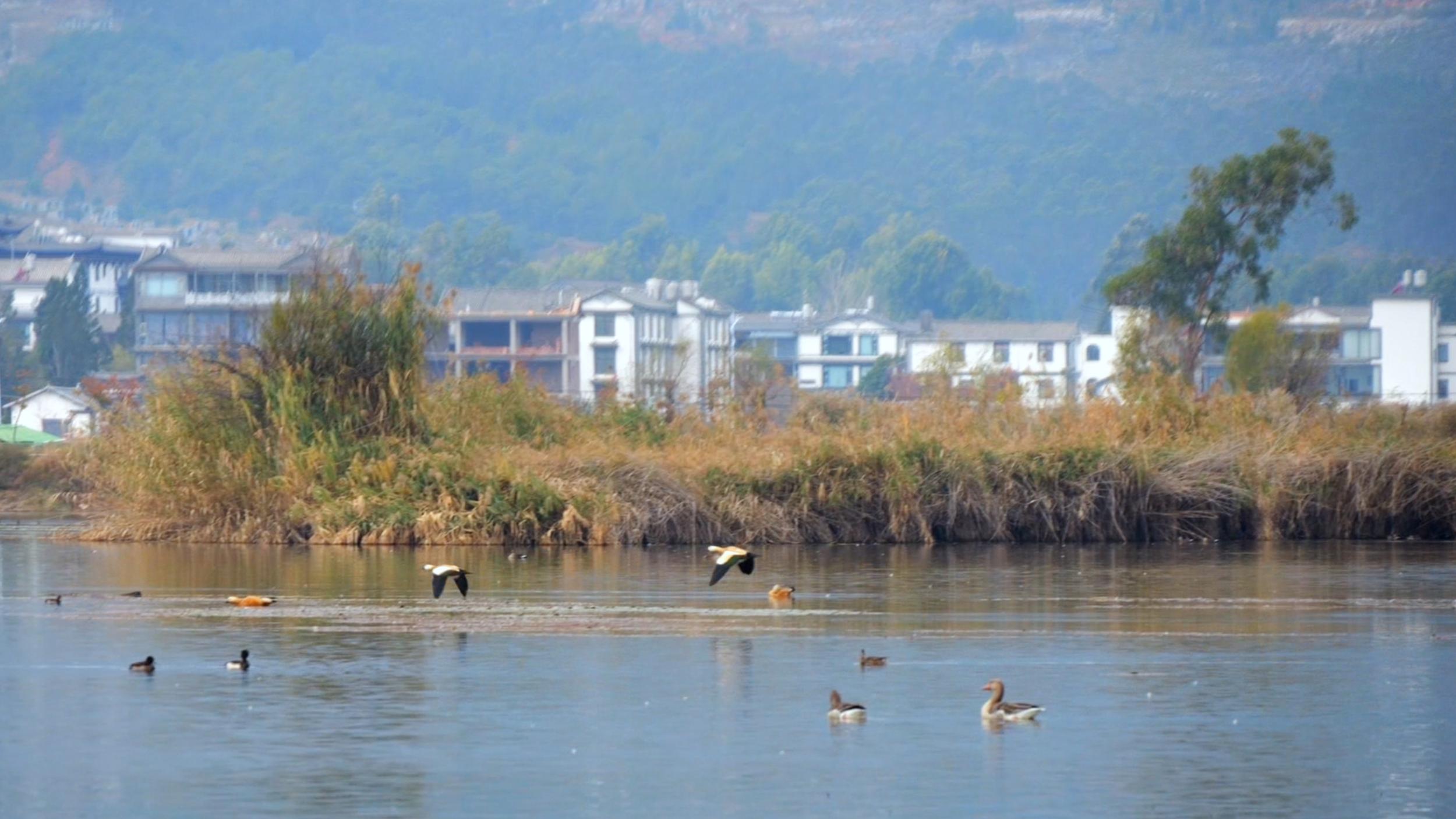 入冬以来,气温逐渐降低,候鸟开始陆续抵达鹤庆草海湿地。在鹤庆西草海广阔的湿地上,芦苇随风摇曳,一群群候鸟在湖面嬉戏,发出一阵阵互相应和的咿咿呀呀叫声,奏响一曲生态和谐之歌。