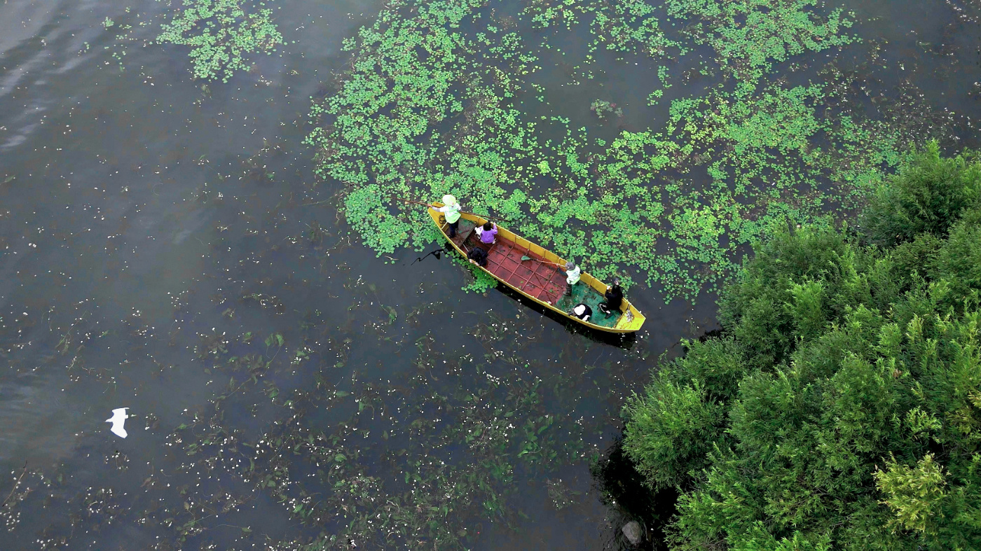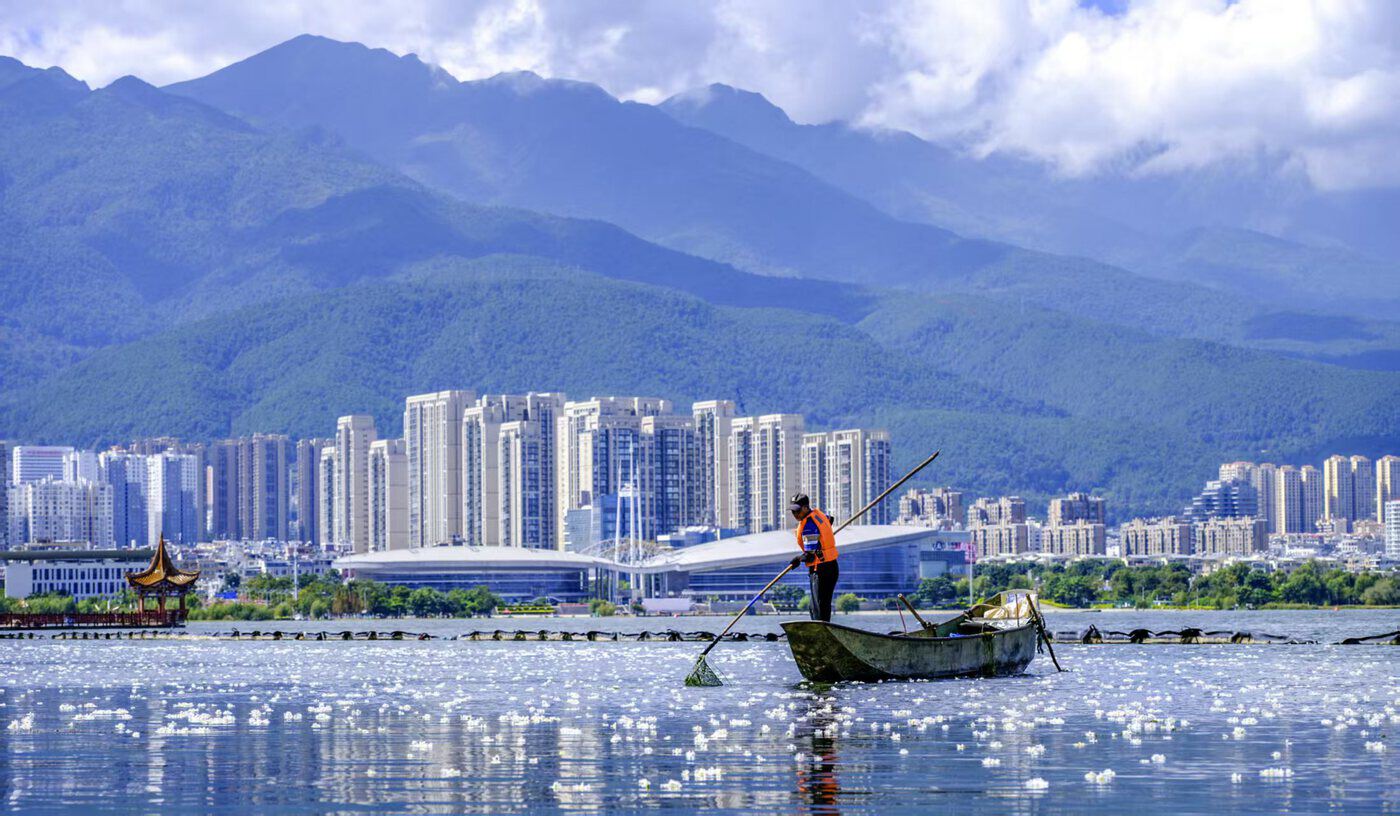 在洱海月湿地公园内,芦苇摇曳、水鸟翩跹。“云南省洱海流域山水林田湖草沙一体化保护和修复工程项目”的实施,让洱海重焕生机。该项目从2023年正式启动,预计通过3年时间,完成保护修复面积约4.28万公顷。其中,“洱海湖体生物多样性保护与饮用水源保护修复”单元通过水生植物关键类群恢复、鱼类结构优化调整、重要滤藻动物与土著鱼种恢复等,从生物因素入手,对湖泊生态系统进行综合调控。湖面之上,工人划着船补种沉水植物,通过重构湖湾“水下森林”,使水生态环境向“草型清水态”转变。日落时分,渔民驾船出海,在每年两个阶段的生态调控期,将银鱼、西太公鱼等外来鱼类调控出湖。