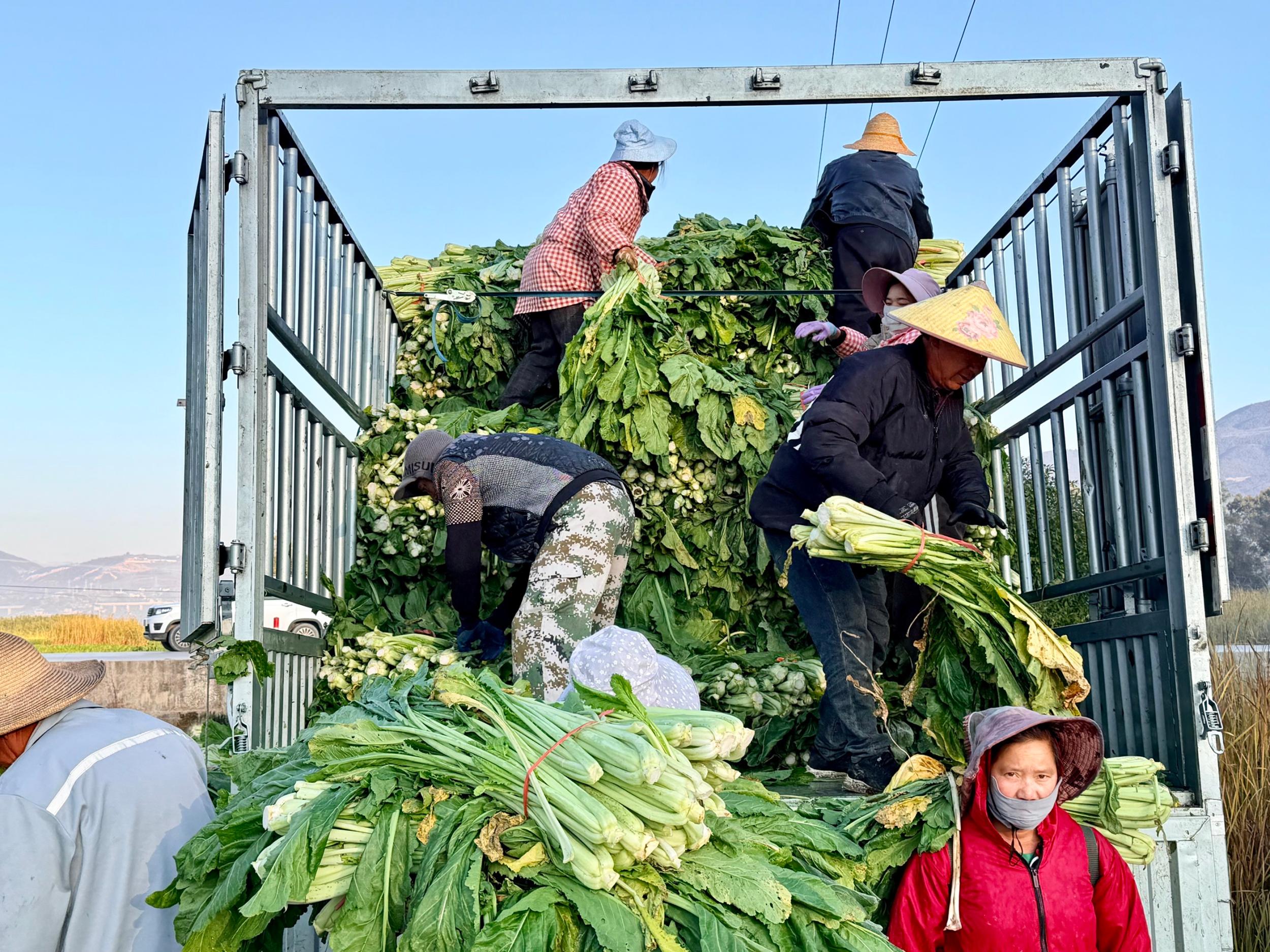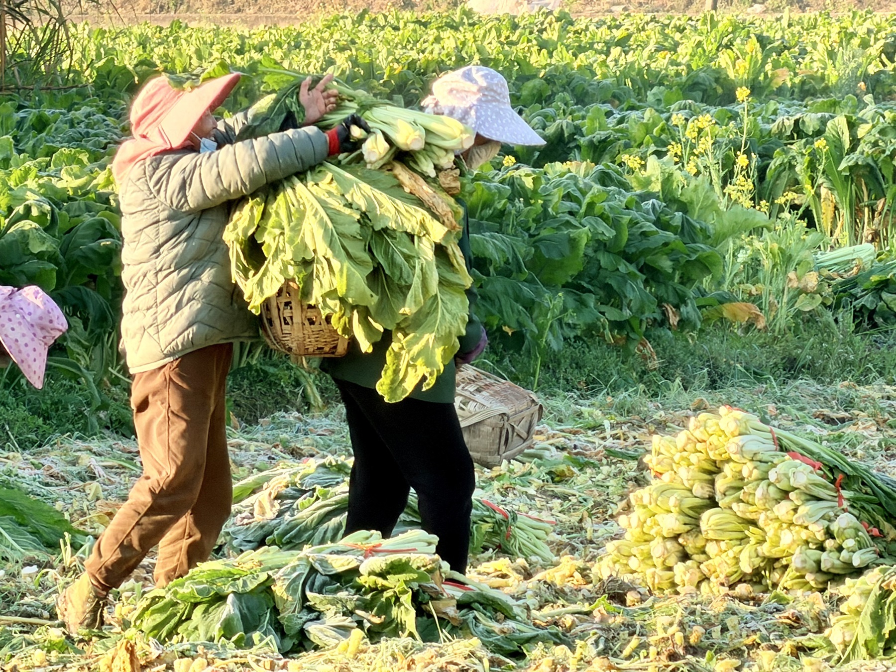 冬日寒意渐浓,云南省大理白族自治州永平县杉阳镇岩洞、仁寿、兴隆、小寨等坝区村寨却是一片绿意盎然的繁忙景象。连片的冬青菜长势喜人,村民们穿梭在菜畦间,忙着采摘、分拣、装筐、运输。