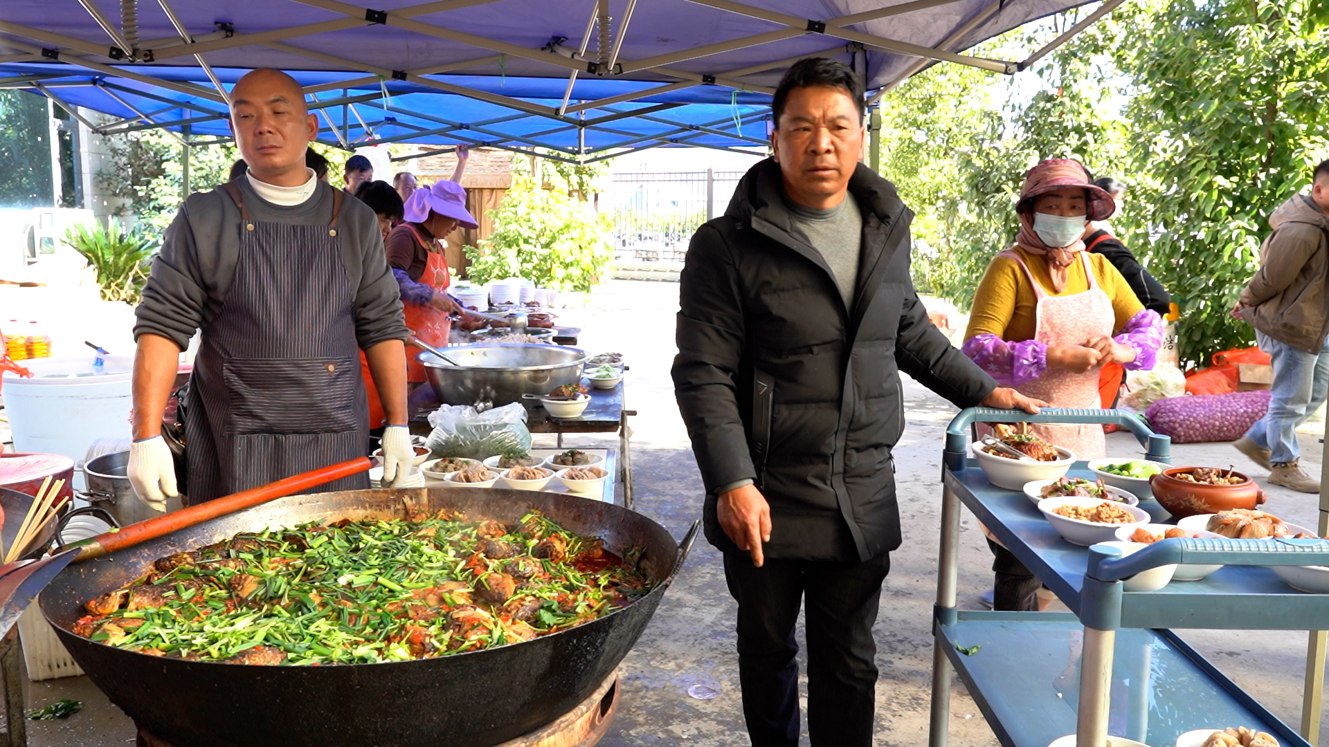 乡宴厨师团队大展身手 吴松江 温昌盛 邓熙翔 摄褚正洪是宾居镇“映春”乡宴厨师团队负责人,10多年前他组建了这支团队。“我以前做批发百货生意,经常有人来找我包席,做红白喜事,我就在镇上组织了200多人的厨师团队,在各个县及大理州内承办宴席。”他说。