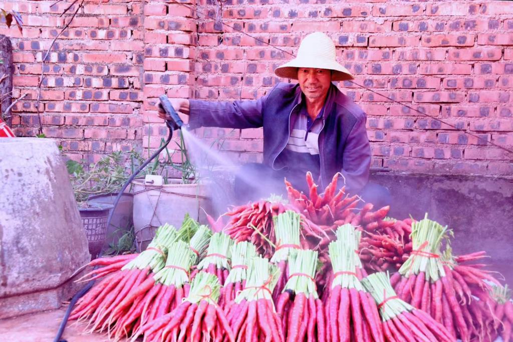 中项厂村共有114户428人。村庄毗邻巍山西河,其沙质土壤和丰富的水源为蔬菜种植提供了优越条件。“我们村的黄萝卜产量和品质都相当不错,亩产约2.5吨,亩产值超过9000元。”中项厂村村民小组组长姚德云向记者介绍。如今,中项厂村农田已从传统的一年两季耕作转变为一年三季,不仅提高了耕地利用率,也提升了农业产业效益,村民收入较以往增长了三倍多。