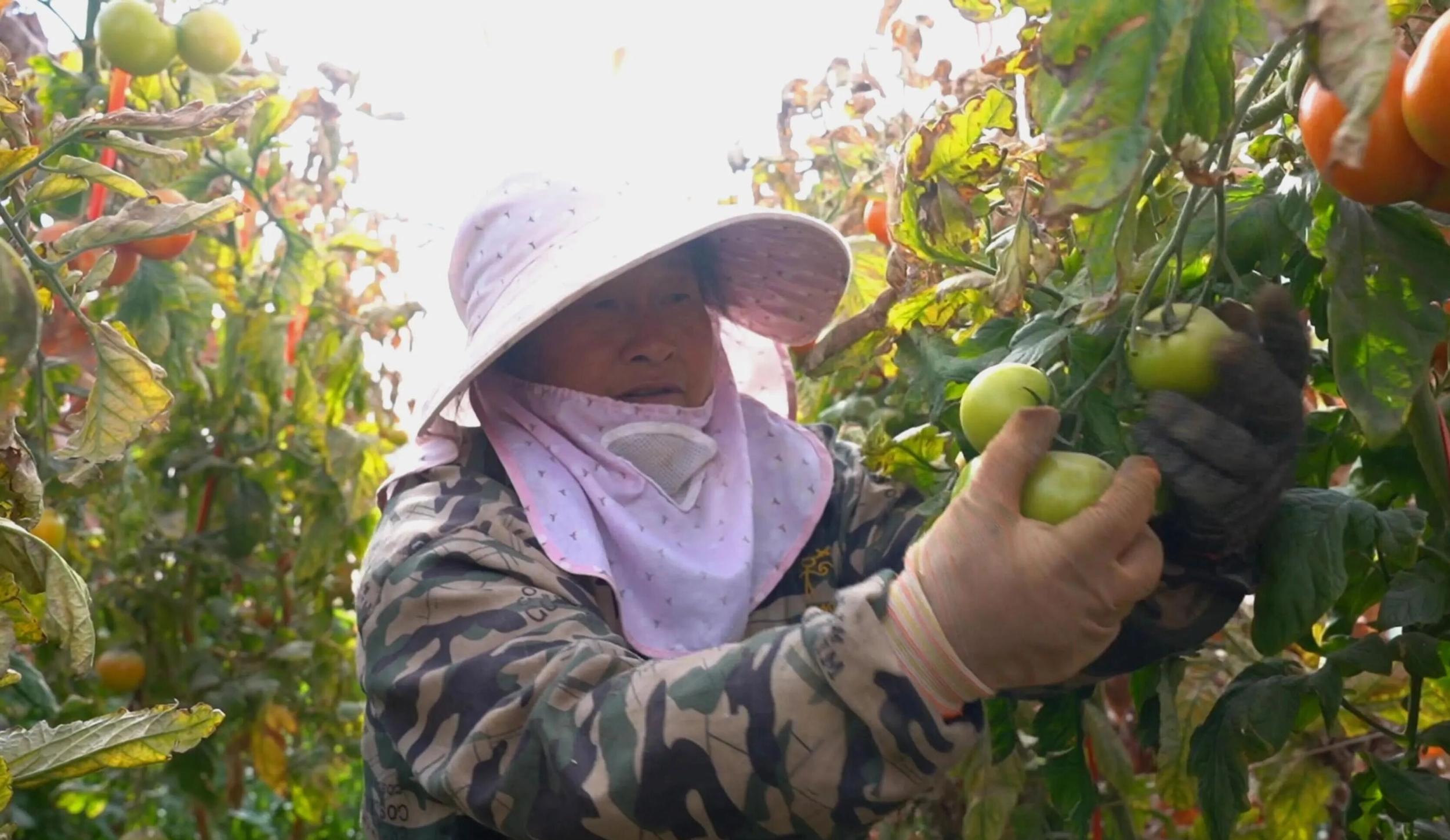 大营镇萂村王振斌家庭农场技术负责人杜汝进介绍:“我们是2025年7月初套种的番茄,大概有25亩,10月初开始采摘第一茬,目前已接近尾声,共摘了十三茬,平均价格在每公斤6元至7元,今年的产值有80万元左右,经济效益不错。”