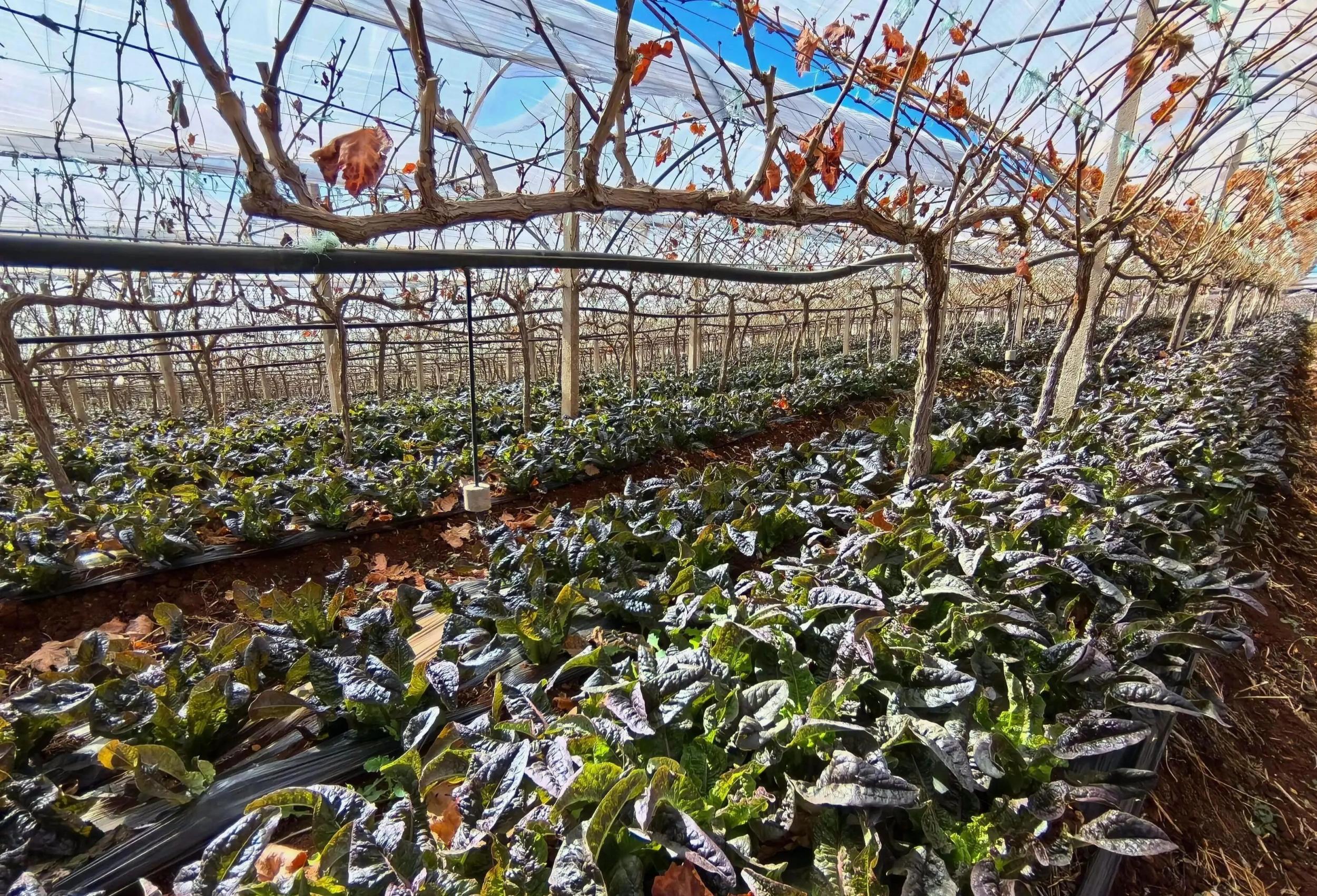 代力刚告诉记者:“我家年年都种贡菜,今年,葡萄田和石榴田里共套种了大约3亩贡菜,按现在的价格来算,每亩毛收入在12000元至14000元,我觉得套种效益不错,因为它时间短、成本低。”