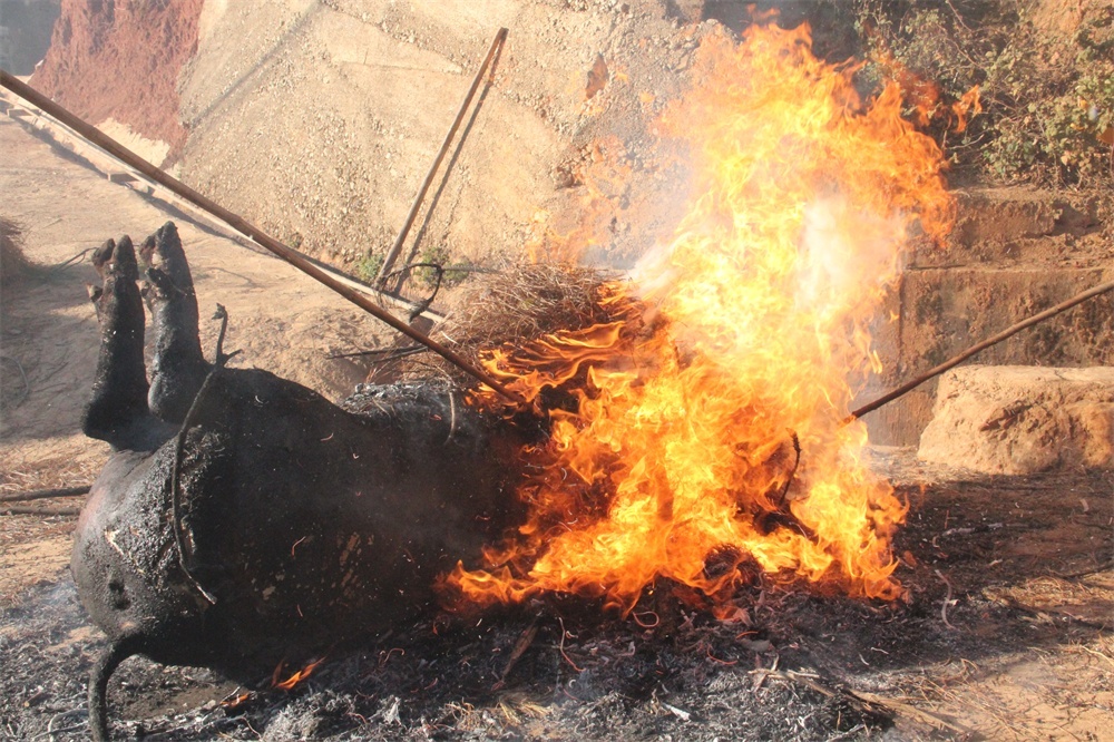 “火腿腌制最讲究的就是猪肉的品质,肉里面的热气要凉透,不凉透就会腌成臭火腿。喷点酒,再撒盐,然后轻轻地搓揉,让酒慢慢渗透到肉里……”先后被评为“全国脱贫攻坚先进个人”“云南省优秀共产党员”的福和村党总支书记、村委会主任杨吉昆提起福和火腿就滔滔不绝。福和村家家养猪,每年过年前都要杀两三头年猪。每户人家在冬至前后加工火腿,是福和村的一大传统,更是一件大事,家家做、年年有。