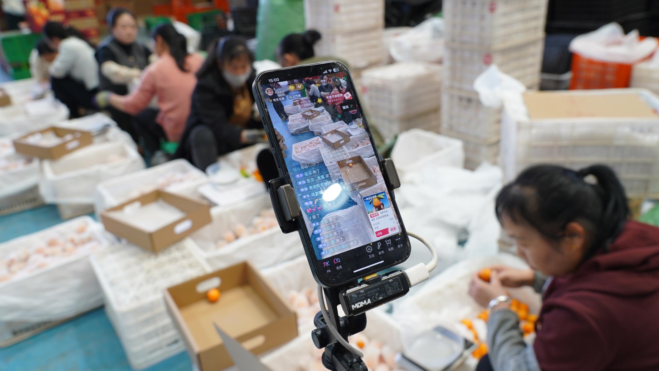 年味渐浓,消费升温。临近春节,宾川县的各类新鲜水果迎来销售高峰,电商直播成为带货主力,200多名主播轮番上阵,直播间订单飘红,线下打包发货忙不停,全县水果销售迎来“爆单”热潮。