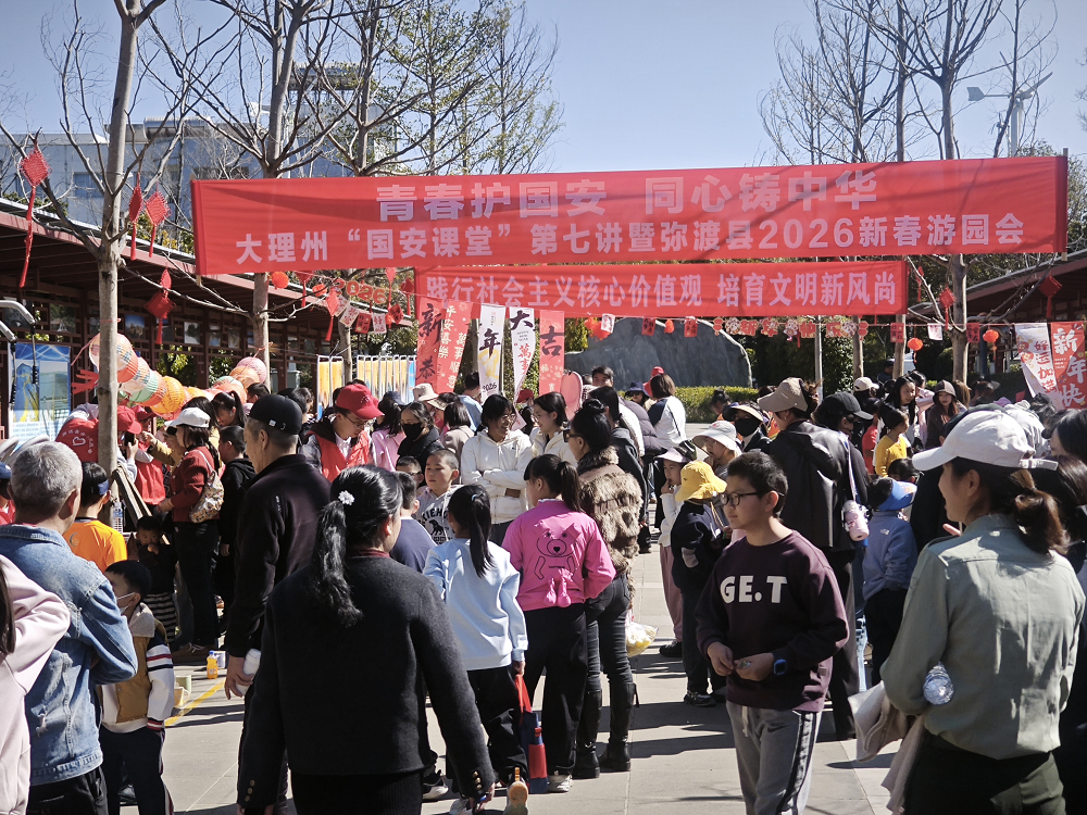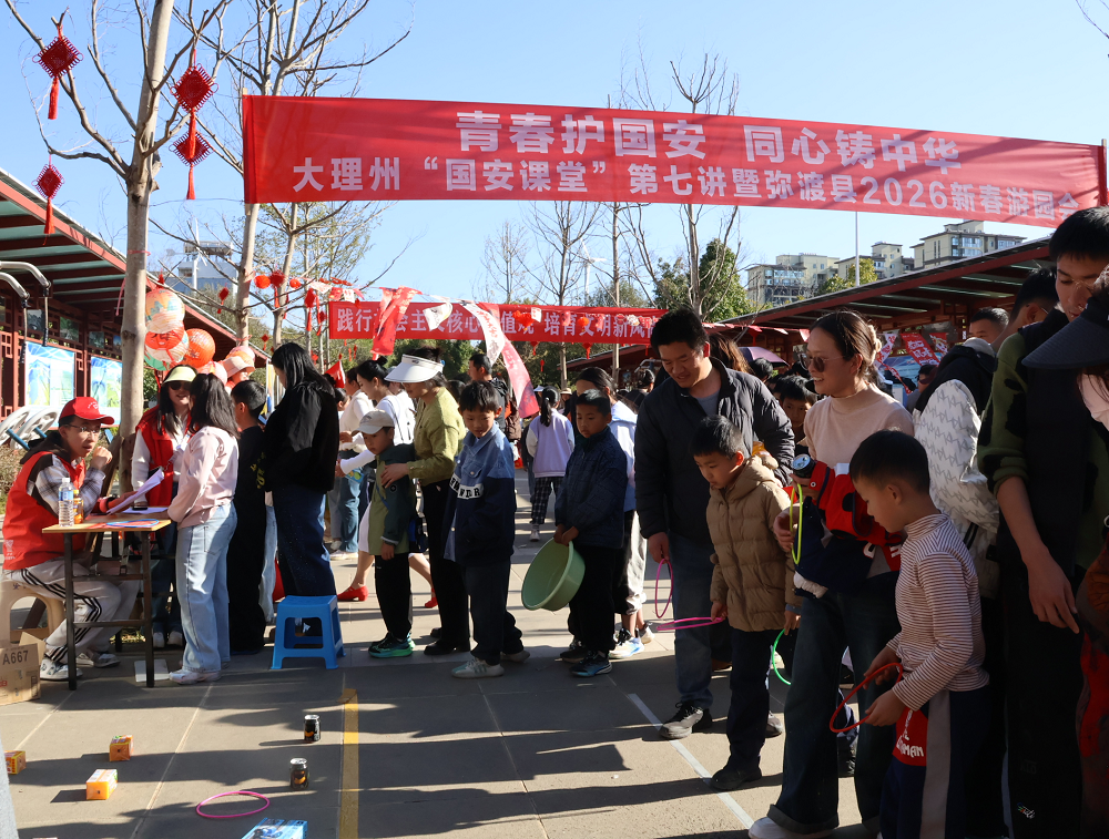 2026年2月12日,中共大理州委办公室、“学习强国”大理州学习平台联合多家单位,开展了云南省大理白族自治州“国安课堂”第7讲暨弥渡县2026新春游园活动,旨在以寓教于乐、贴合基层群众生活的方式开展总体国家安全观宣传教育,让弥渡县各族群众在欢声笑语中品年味、学国安、悟初心,推动国家安全教育走深走实、接地气聚人气。