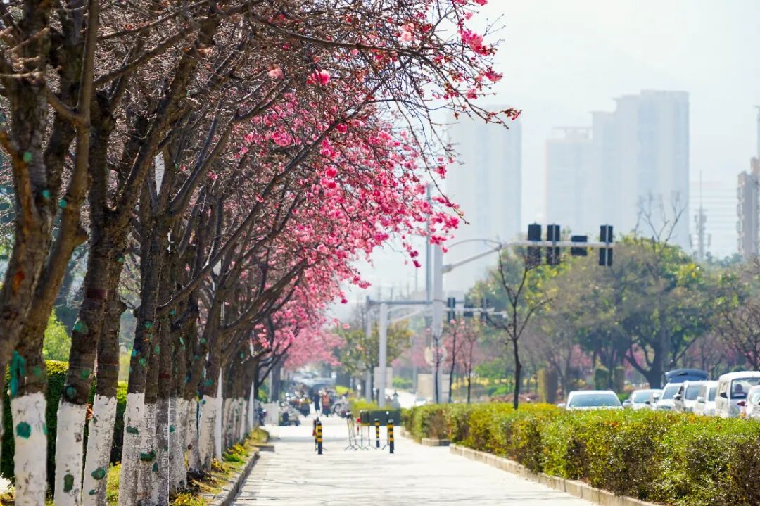 这场粉色的春日浪漫,并非仅局限于校园围墙之内。