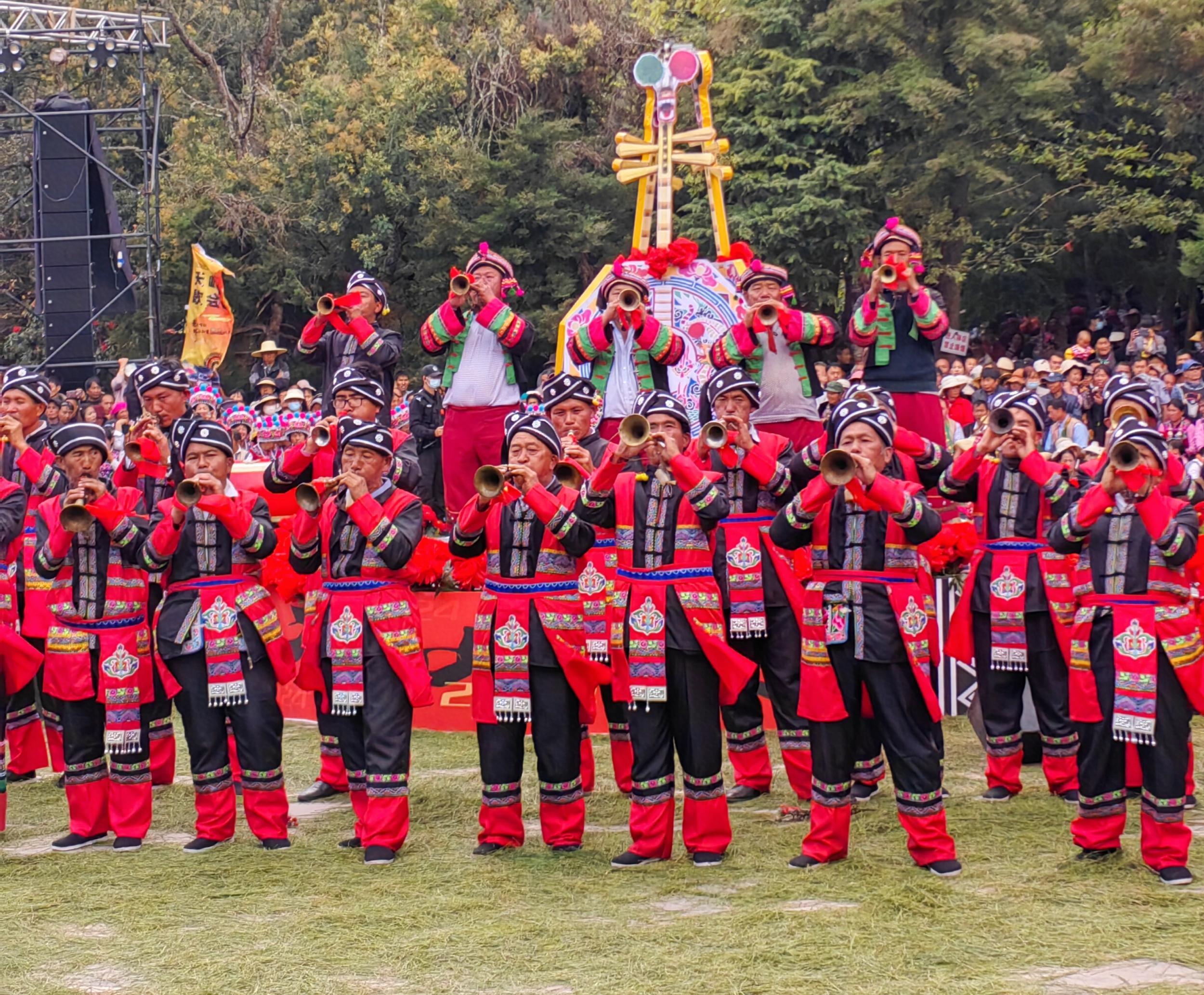 歌会现场,最引人注目的是五彩斑斓的彝族服饰。折苴么红蓝绿相间,庄重典雅;黑苴以黑红为主,热烈如火;力必甸鲜红如杜鹃;子乍苴翠绿似杨柳……各村各寨服饰各具特色,无一雷同。伴随着葫芦笙、三弦的悠扬曲调,《正音歌》《顺河跳》《打歌来》等传统歌舞轮番上演,舞者们舞步飞旋,用原生态表演诉说民族起源与文化传承。
