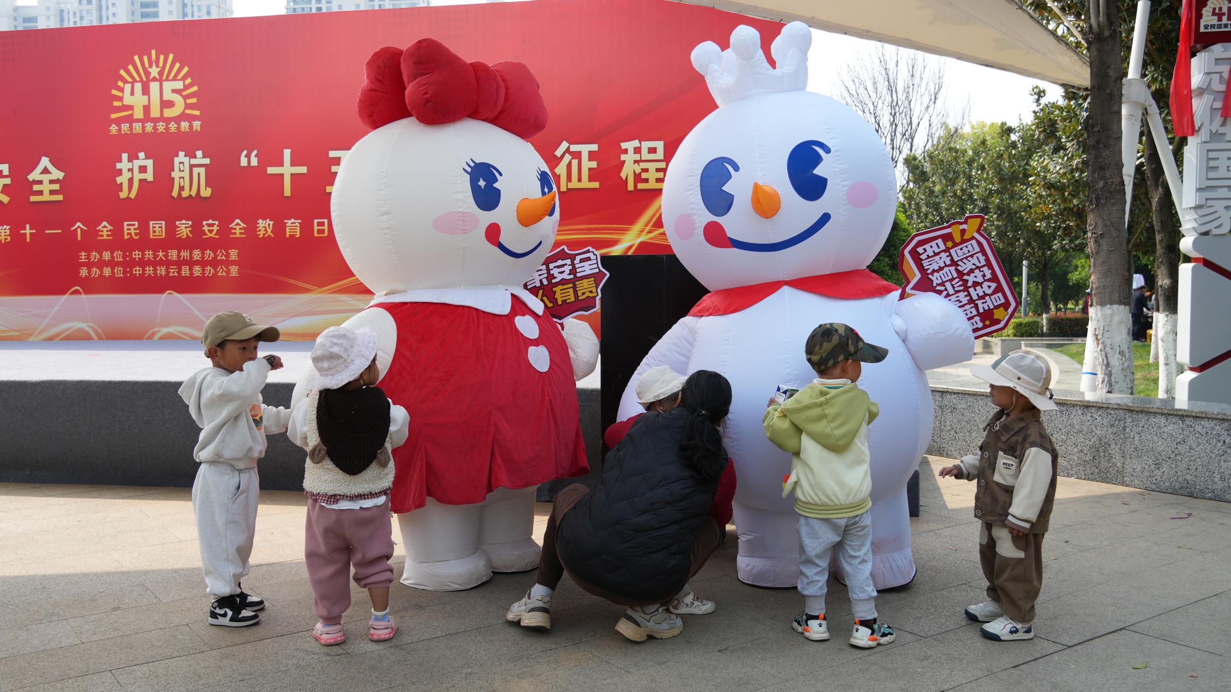 活动现场,蜜雪冰城“雪王巡游”宣传活动环节成为孩子们的最爱。10位憨态可掬的雪王气模人偶一亮相,便瞬间吸引了全场目光,小朋友们争先恐后地围上前合影打卡,现场欢声笑语不断。随后,雪王手持国家安全宣传标牌,从玉波湿地公园出发,沿着财富路、龙翔路、钟鼓楼等县城核心路段巡游宣传,让国家安全宣传走出公园,走进街头巷尾。