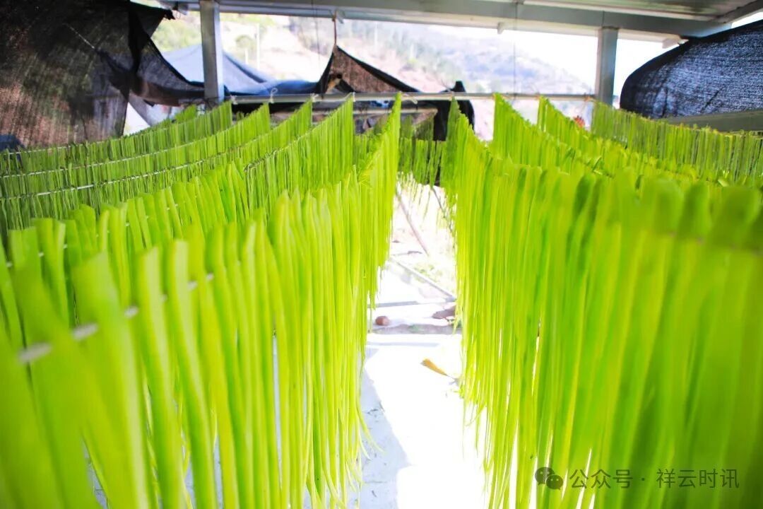 沿着云南省大理白族自治州祥云县米甸镇楚场村河畔一路前行,连片贡菜绿意铺展,房前屋后晾晒的菜条整齐垂挂,清香四溢,成为乡村里一道亮眼的增收风景线。