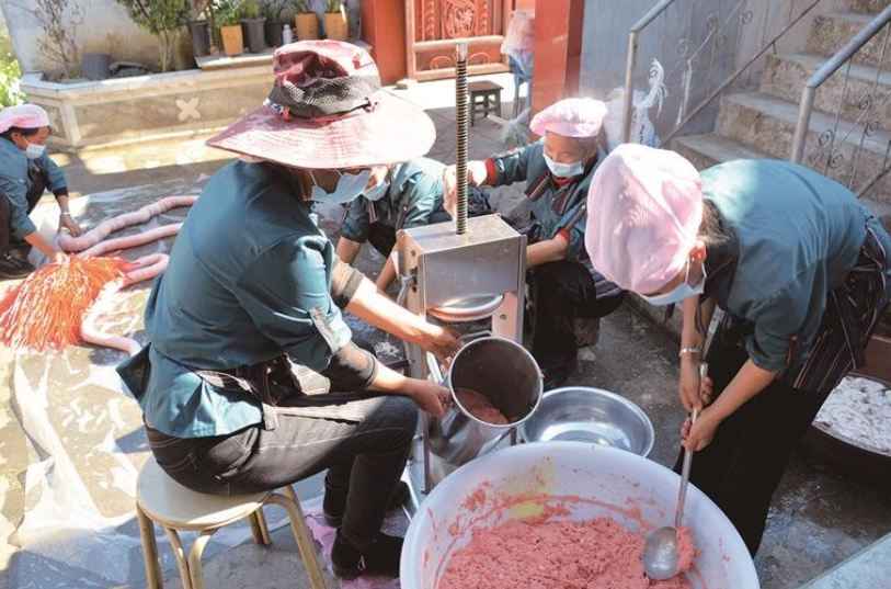 在云南省大理白族自治州云龙县,一到腊月,家家户户都会制作血肠,年味往往从各家各户院子里挂着的几串色泽鲜艳、香味独特的血肠开始。云龙血肠风味独特,是当地人年节餐桌上的必备菜肴,也是游子心中的乡愁味道。