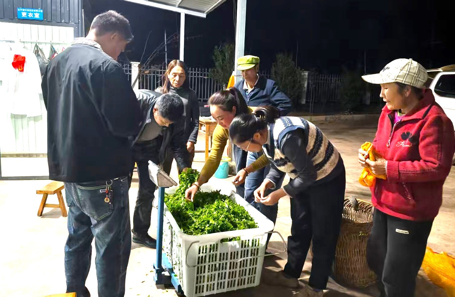 今年首批收购的大树茶鲜叶,除了来自界面村的本土茶园,还吸引了水泄彝族乡狮子窝村、阿波村以及杉阳镇松坡村的茶园。收购首日,鲜叶进厂量达1.8吨。